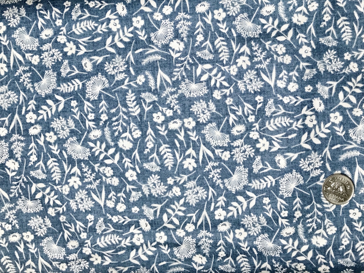 2061, colour B, Ellie for Makower, blue background with white all over flower design, 100% premium quality quilt cotton, 42" wide